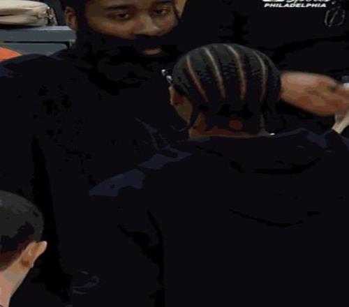 恩比德向哈登示好一幕曝光!我知道你生我气但我还是要打招呼