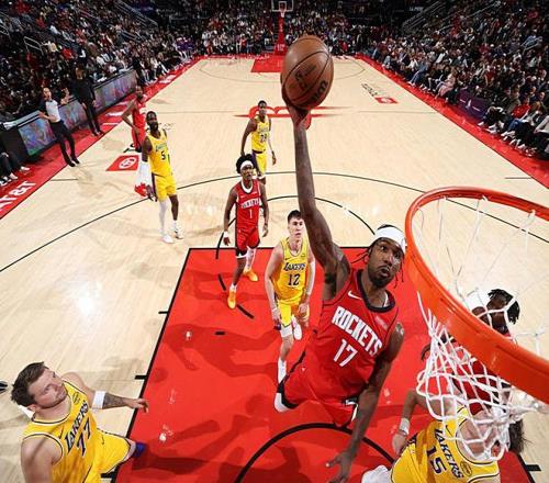 | 在此前的一场NBA常规赛中,洛杉矶湖人以100比92战胜了主场作战的休斯顿火箭。本场比赛后,豪取6连胜的湖人的战绩提升到了43胜25负,排名继续稳定在西部第3位,与身前的圣安东尼奥马刺的胜场差为7场,与身后的火箭的胜场差为1.5场;而在最近3场比赛中输掉了两场比赛的火箭的战绩则是下滑到了41胜26负,继续排名西部第4位,与身前的湖人的胜场差为1.5场,与身后的丹佛掘金的胜场差为半场。