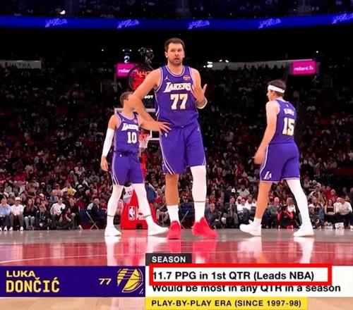 首节比赛,东契奇9投4中,三分6中3砍下13分3篮板3助攻1抢断,本赛季首节场均11.7分,创造历史(有记录以来)单节场均最高得分。 次节回来,斯玛特仙人指路,詹姆斯反跑高高跃起完成炸裂单臂劈扣,紧接着完成抢断,詹姆斯快攻起飞远距离单臂砸扣,湖人领先到13分,打停火箭。
