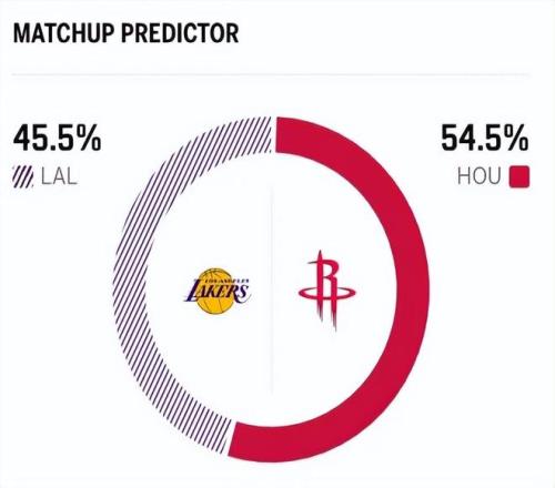 这是两队本赛季的第四次交锋,前三次交手,火箭仅取得1胜2负的战绩。 赛前,美媒ESPN对本场比赛进行了胜率预测,湖人队胜率仅有45.5%,略占劣势,火箭胜率则为54.5% 。