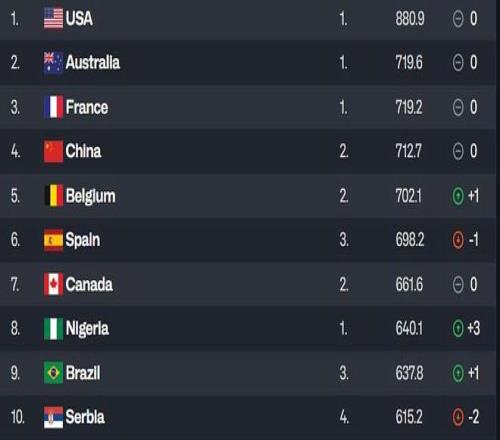 将中国女篮的积分升至712.7分,超越了比利时女篮。 牢牢守住了中国女篮世界排名第四的位置。