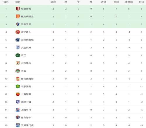 一场11,让蓉城狂喜!3大豪门踢完3轮全是负分,中超积分榜变天