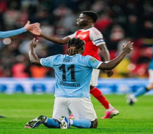 仅仅过了4分钟,阿森纳的球门再度失守,努内斯右路下底传中,奥赖利门前头球上演梅开二度,曼城将领先的优势扩大到了2球,第78分钟杀到前场的卡拉菲奥里在蓝月军团的禁区内完成了一脚凌空抽射,运气不佳皮球被远侧立柱挡出。