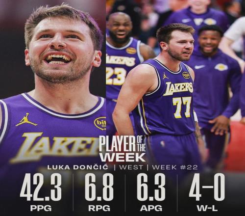 | 北京时间3月24日,NBA常规赛:活塞主场vs湖人。东契奇第16个技犯被撤销,本场能够出战。此外,今天赛前NBA官方宣布:东契奇和三球当选周最佳球员。东契奇上周场均砍下42.3分6.8篮板6.3助攻,率领湖人取得4胜0负。